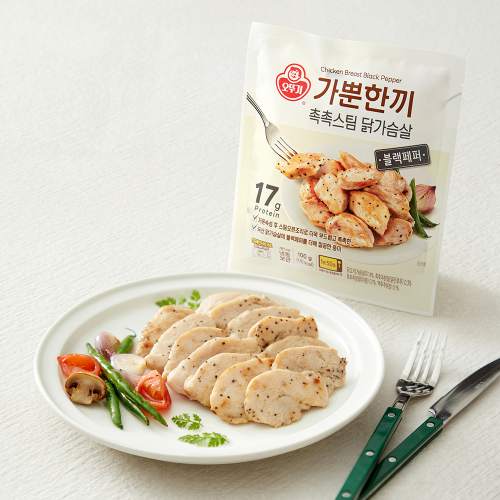 ▶ 제품명: 오뚜기 가뿐한끼 촉촉스팀 닭가슴살 갈릭/닭강정맛/숯불바베큐맛/블랙페퍼/레드페퍼/고기만두/김치만두/핫도그