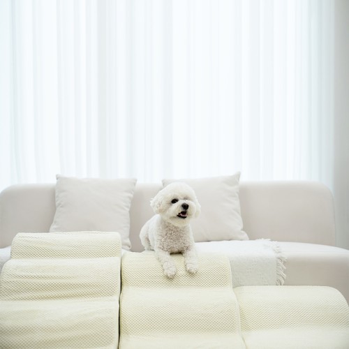 올미오펫 구름패브릭 강아지 계단은 반려견이 높은 침대나 소파를 안전하게 오르내릴 수 있도록 돕는 기능성 제품입니다. 특히 성장기 강아지부터 관절이 약한 노령견까지 모든 반려견의 관절 건강을 섬세하게 고려해 설계되었어요.