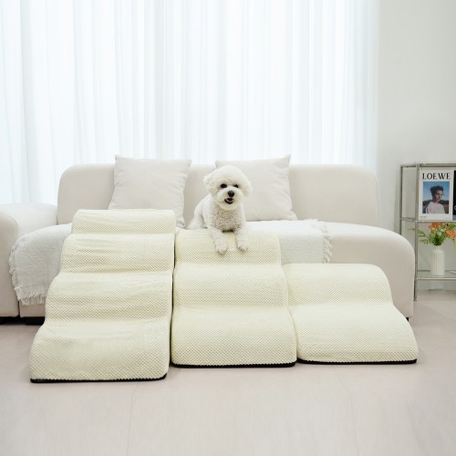 올미오펫 구름패브릭 강아지 계단 스텝 논슬립 반려견 애견 슬라이드 곡선 3단